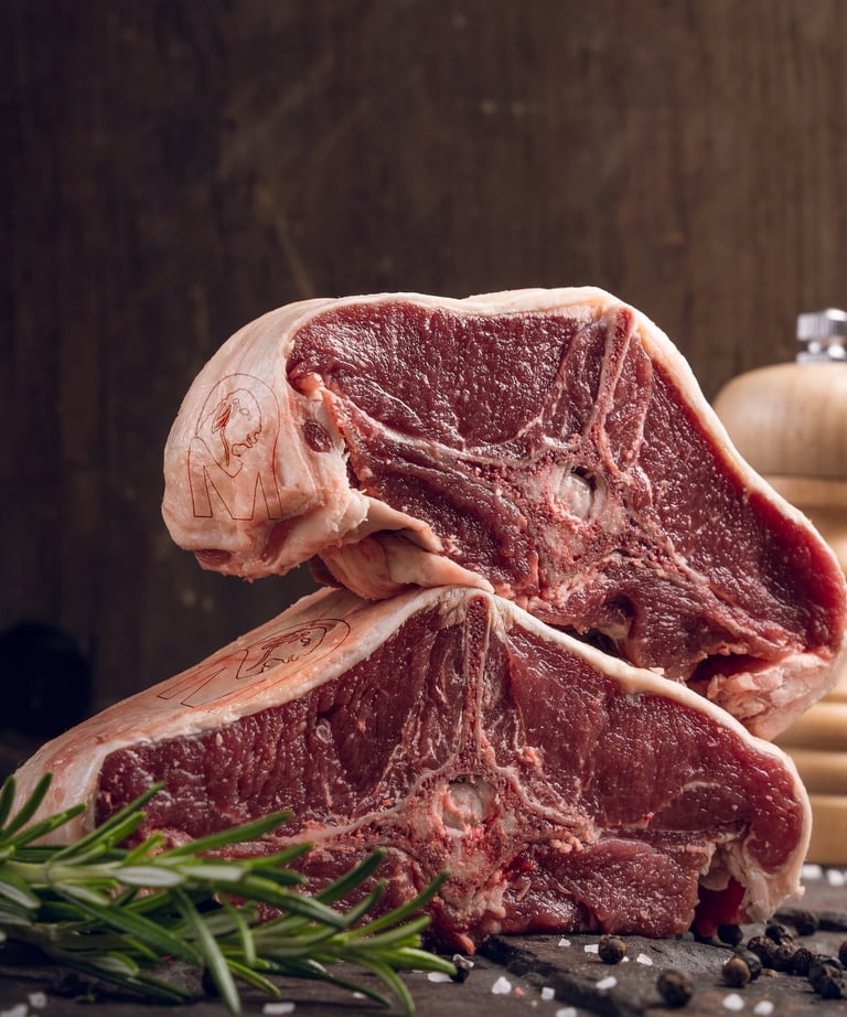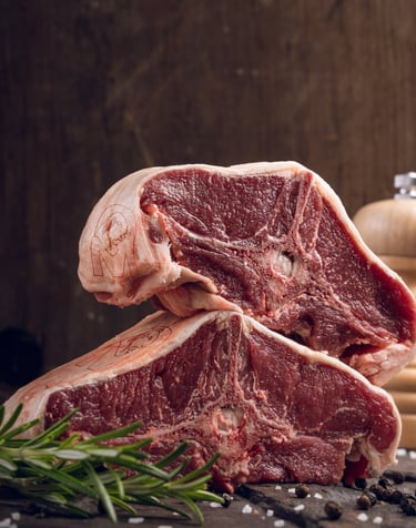 Corte transversal del lomo fino y lomo ancho, con hueso en forma de T en su interior